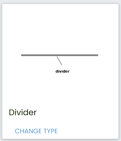 When selected, the interface identifies the component type as “Divider” and displays a simple horizontal line as its visual representation. Users can click “CHANGE TYPE” to switch to a different layout if required.