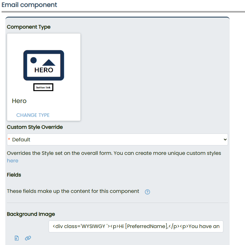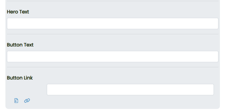 The "Hero" component allows us to insert text and also gives the option to add a button with link to a new webpage, picture or PDF document for example.